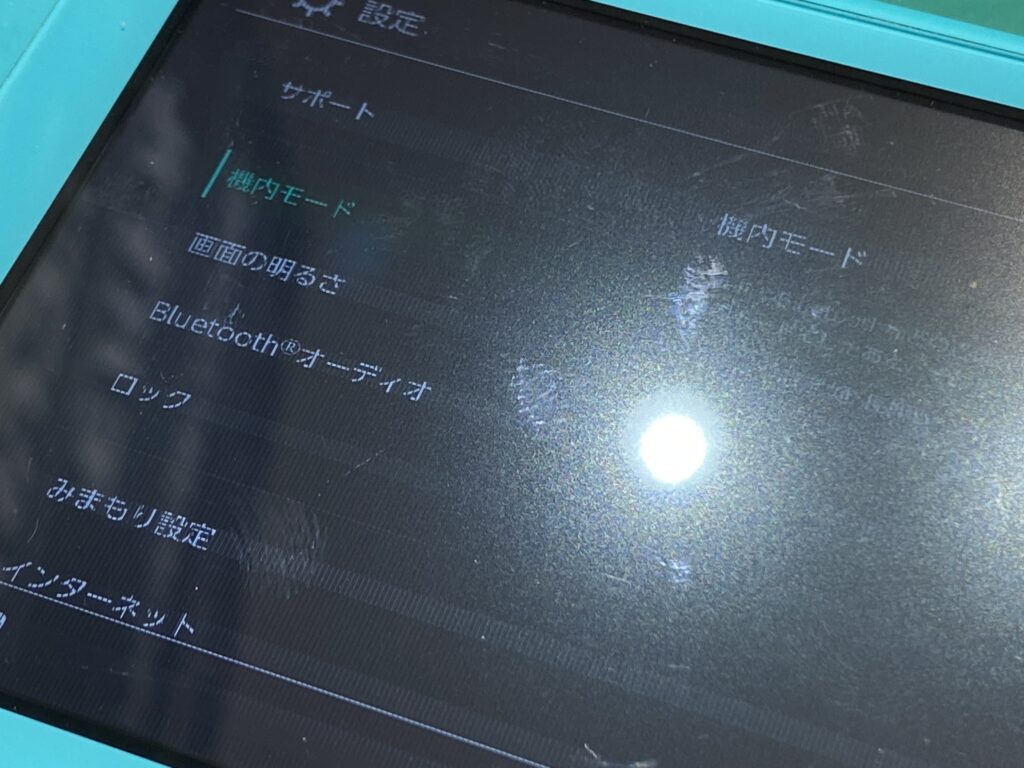Switch Liteの液晶は衝撃や圧迫で破損しやすく、内部パネルにダメージが入るとこのように横線や縦線が出てしまうことがあります。 放置するとさらに悪化し、画面全体が映らなくなることも…。