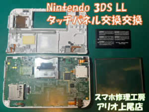 Nintendo 3DS LL(ニンテンドー スリーディーエス エルエル)のタッチパネル誤動作などの修理は、ゲーム修理工房アリオ上尾店へ!