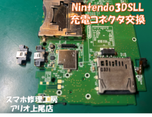 Nintendo 3DSLLの充電コネクタ交換などの修理は、ゲーム修理工房アリオ上尾店へ!