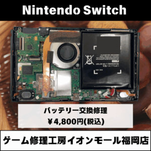 ゲーム修理工房イオンモール福岡店ならNintendoSwitch(ニンテンドースイッチ)のバッテリー交換も即日対応しております!