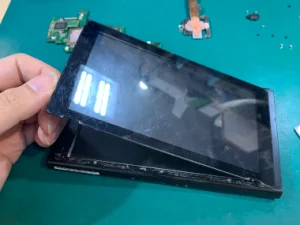 本体を分解し、破損していた液晶パネルを新しい部品へ交換しました。作業後は発色や表示の確認、タッチ操作チェックも実施し、問題なく動作することを確認しました。