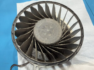 基板や電源関係の不具合も考えられますが、多くはホコリや汚れが蓄積されて上手く冷却ファンが動作していないことが挙げられます。今回は、内部のクリーニングをしてご返却したところ、解決したとのご連絡を受けました!!