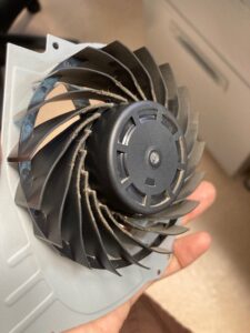 丁寧に分解すると冷却ファンに埃が付いております。