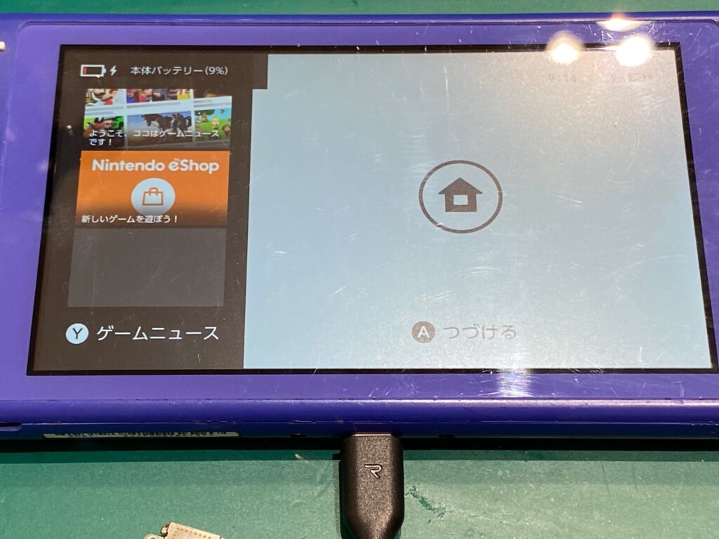 Switch Liteの充電コネクタは毎日の抜き差しによって徐々に摩耗や変形が起きやすく、 内部ピンの破損や基板との接触不良で通電できなくなるケースが多いです。