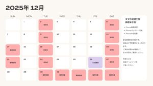 11:00~19:00 毎週木曜日 臨時休業12/8.12/9.12/21 年末年始休業:12/29~1/3