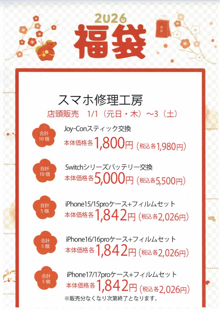 2026年の新年を記念した「ゲーム修理 初売り福袋」を数量限定でご用意いたしました。